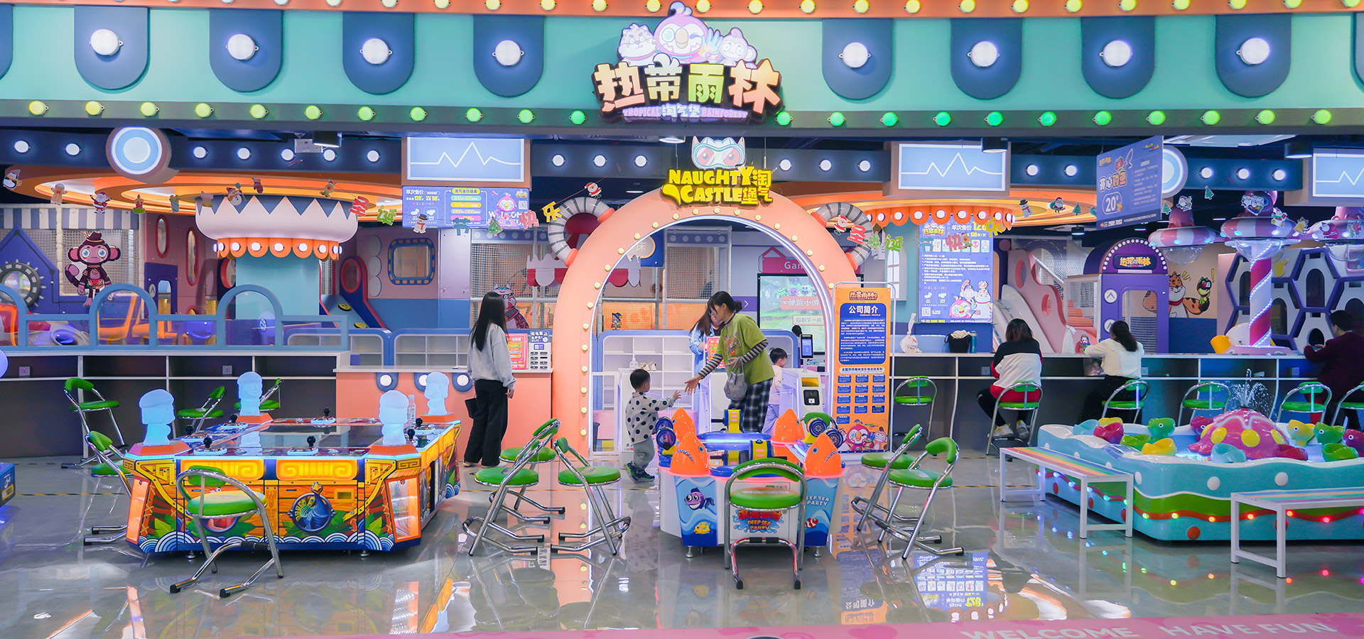 热带雨林深圳店位于方元城3楼,经营面积约2100平米,是一家以热带雨林为装饰主题的大型室内游乐场,坚持阳光,健康,欢乐,和谐的经营理念,致力于打造成为集寓教于乐,趣味于一体的现代化家庭娱乐体验中心。